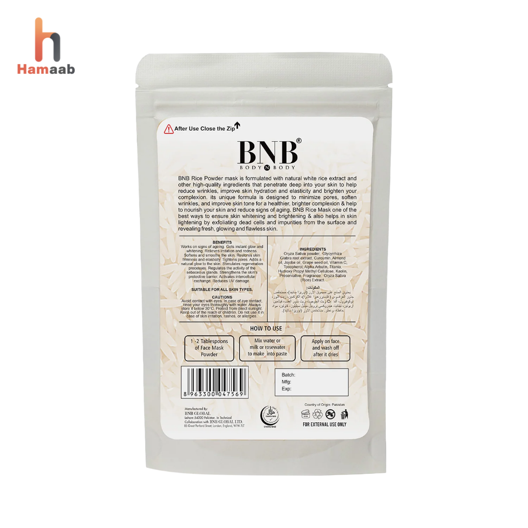 Discover the secret to smooth, bright, and nourished skin with the BNB Rice Extract Mask, now available at Hamaab. Infused with the natural goodness of rice extracts, this mask gently brightens dull skin, helps minimize pores, and leaves your complexion soft and radiant.