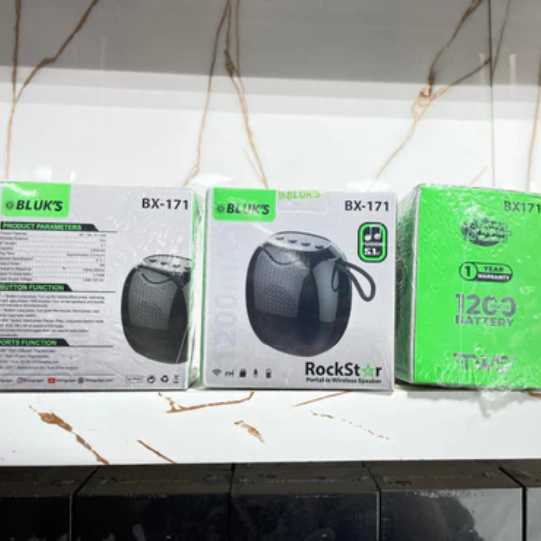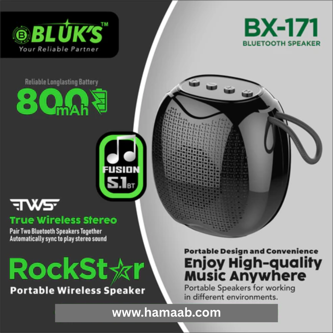 Get ready to feel the music with the BX-171 RockStar Rechargeable Bluetooth Speaker, now available at Hamaab. Engineered for superior audio performance, this speaker delivers powerful bass, clear vocals, and dynamic sound — perfect for parties, workouts, or relaxation.