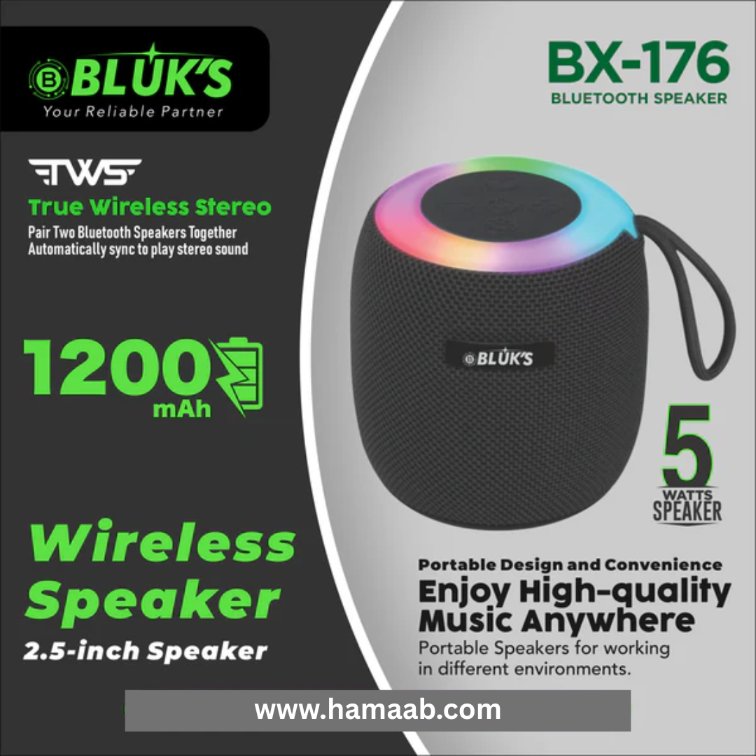 Upgrade your listening experience with the BX-176 Wireless Bluetooth Speaker, available exclusively at Hamaab. Designed for music lovers, this compact yet powerful 2.5-inch Bluetooth speaker delivers rich sound, deep bass, and crisp clarity in every beat.