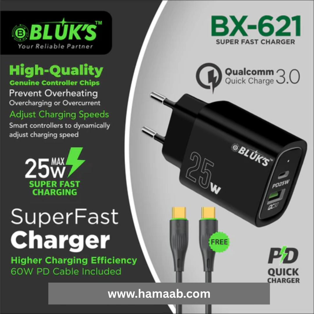 Power up your devices in record time with the BX-621 Fast Charger, a compact 25W USB-C wall adapter engineered for speed and safety. Compatible with a wide range of smartphones, tablets, and USB-C devices, this charger delivers super-fast charging performance using Power Delivery 3.0 and Quick Charge 3.0 technology.