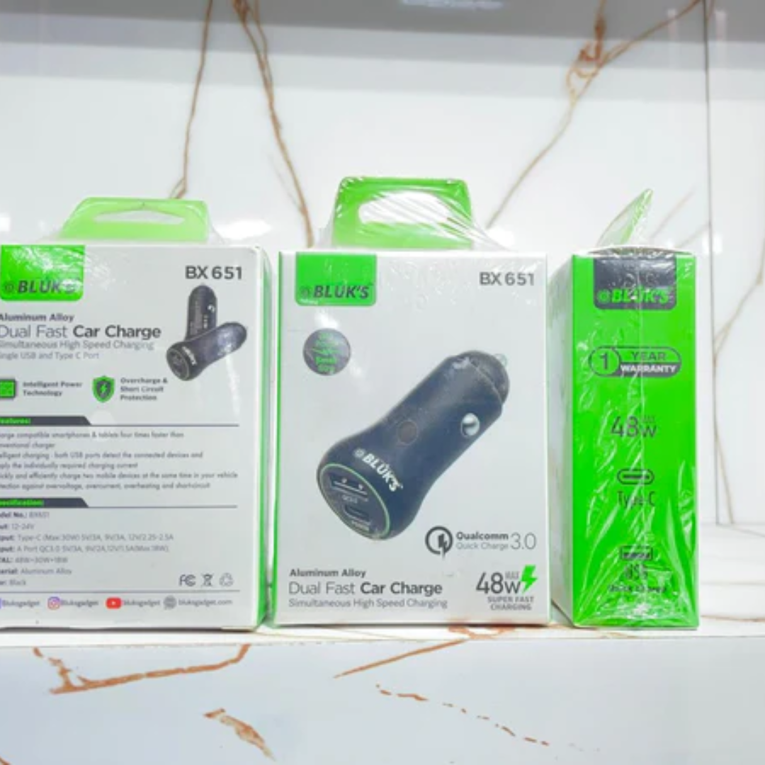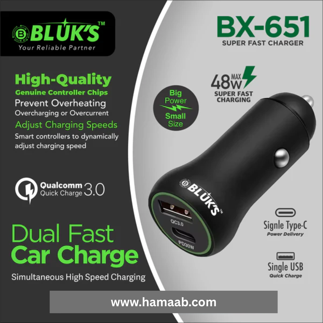 BX-651 Dual Fast Car Charger – 48W PD + QC3.0