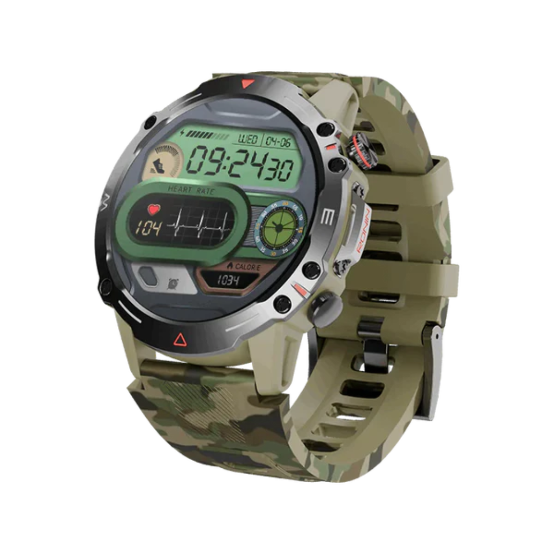 Engineered to withstand the toughest conditions, the Ronin R‑012 Rugged Smart Watch combines a military-grade rugged build with advanced smartwatch features. Its IP68 water and dust resistance, durable frame, and rugged strap make it ideal for outdoor enthusiasts, fitness fans, and daily adventures.