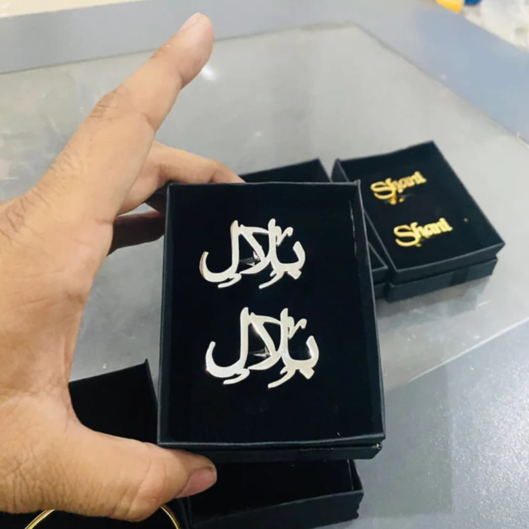 Bring a touch of tradition and sophistication to your attire with HAMAAB’s Urdu Customized Name Cufflinks. Perfectly crafted to display your name or a loved one’s name in beautiful Urdu calligraphy, these cufflinks are more than just accessories — they are a statement of identity.
