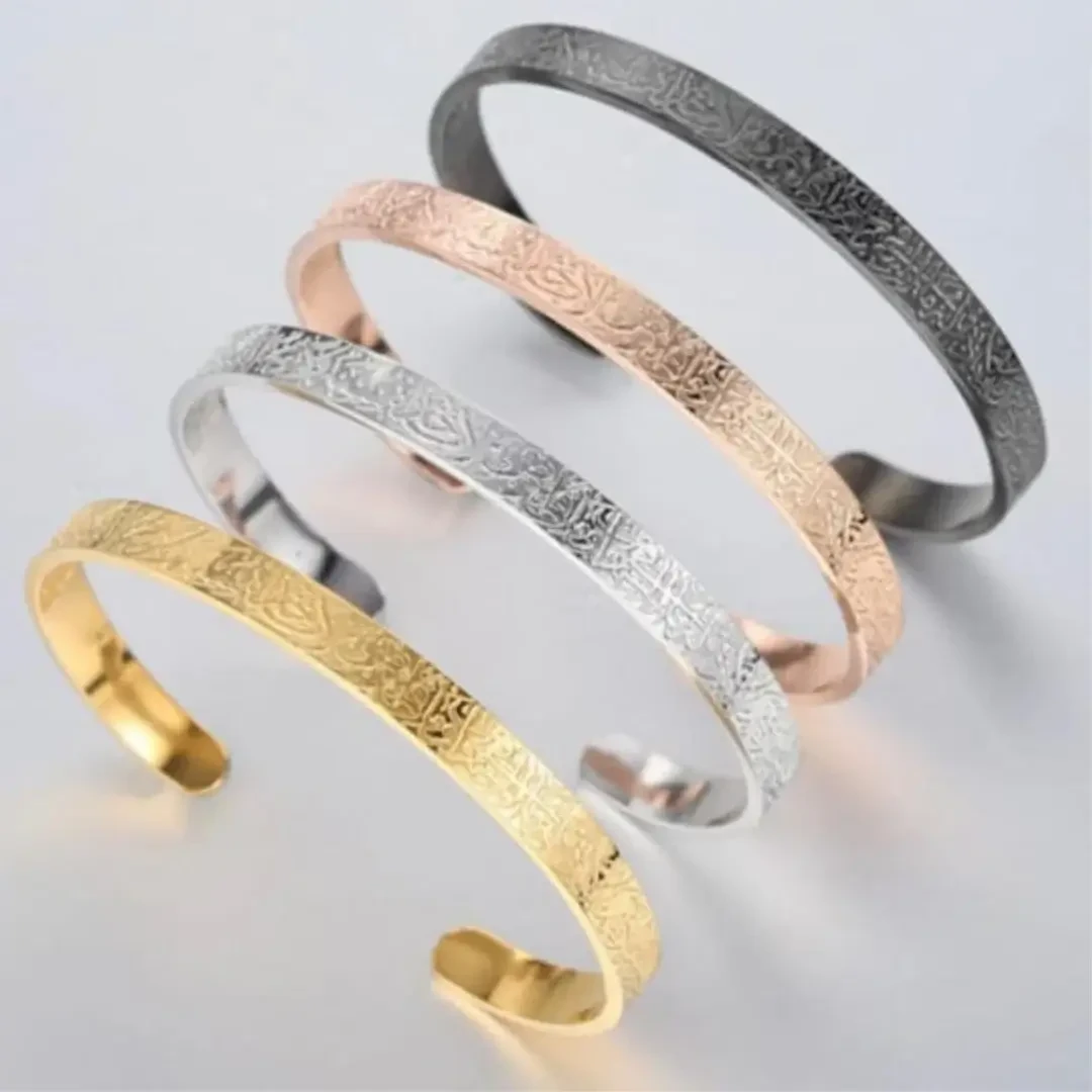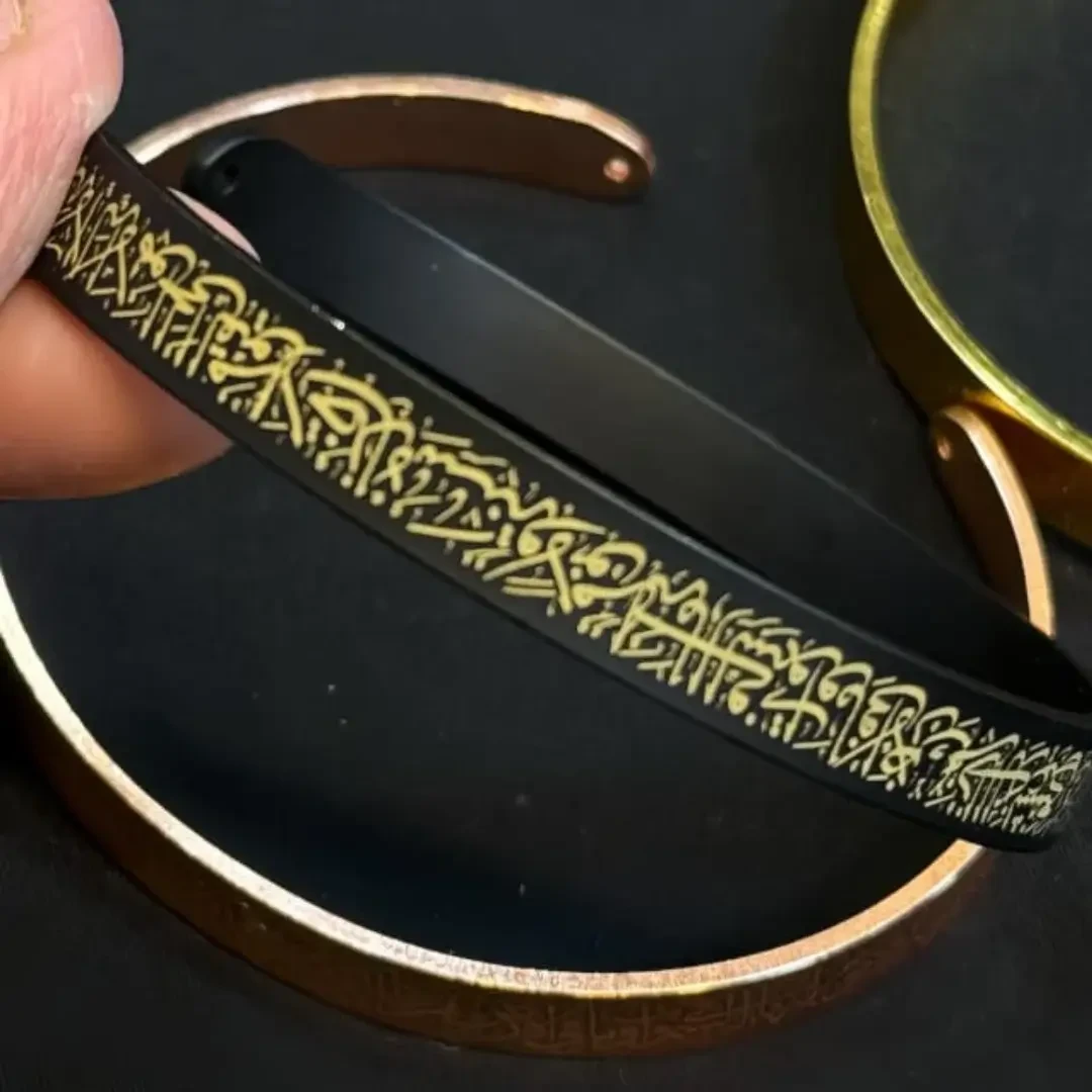 Introducing our beautifully handcrafted Aytal-Kursi Bangle, made with love and elegance. Designed with the sacred verse Ayat al-Kursi, this 1 Karat artificial bangle is more than just jewelry – it's a spiritual statement piece that brings style and meaning together.