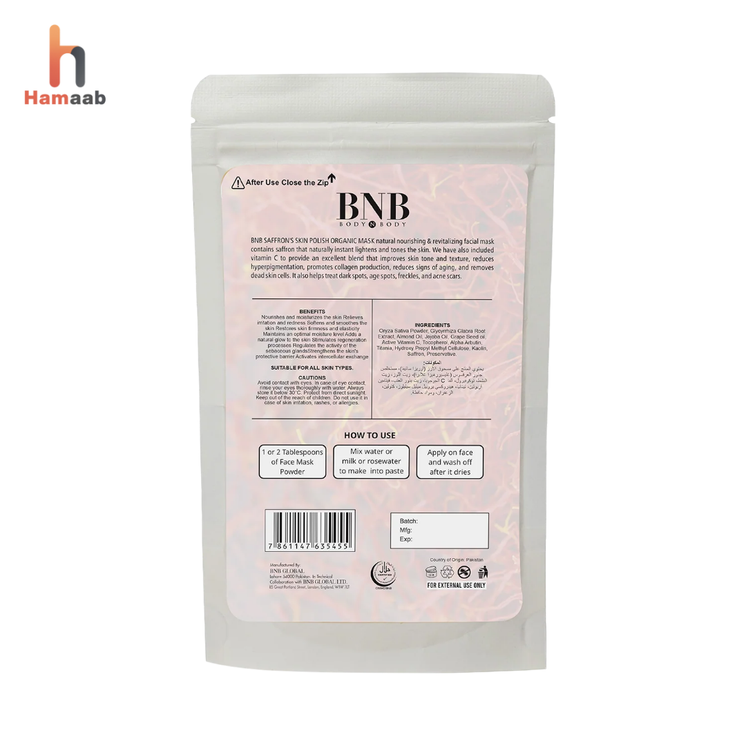 At Hamaab, we promise only authentic and result-oriented skincare. The BNB Saffron Skin Polish Mask is a perfect addition to your beauty routine if you’re looking for a healthy, luminous, and youthful glow.