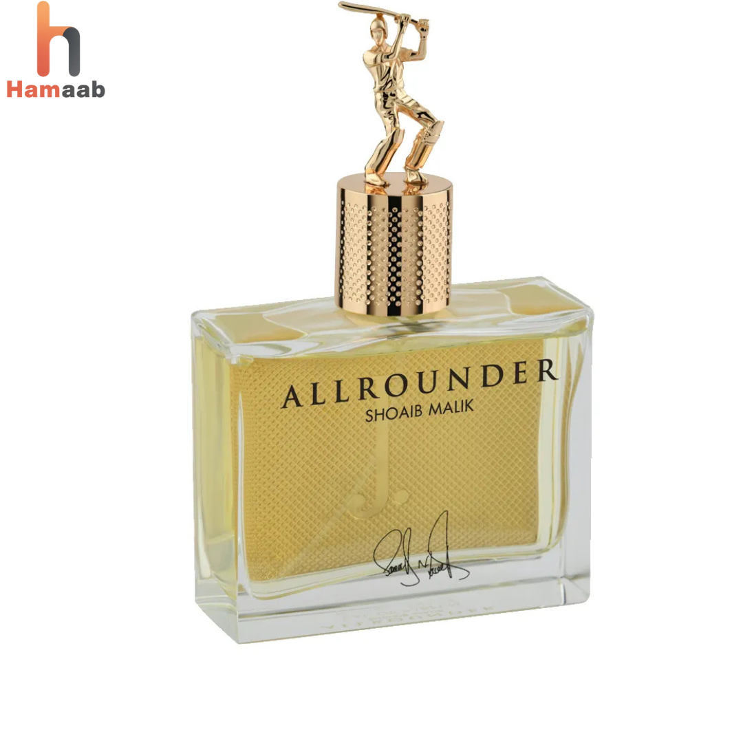 Hamaab J. Perfume All Rounder Confident. Dynamic. Unstoppable. J. Perfume All Rounder is a fragrance made for the man who excels in every aspect of life. With its bold woody notes and a hint of citrus freshness, this All Rounder Perfume delivers a strong, masculine aroma that lasts from day to night.