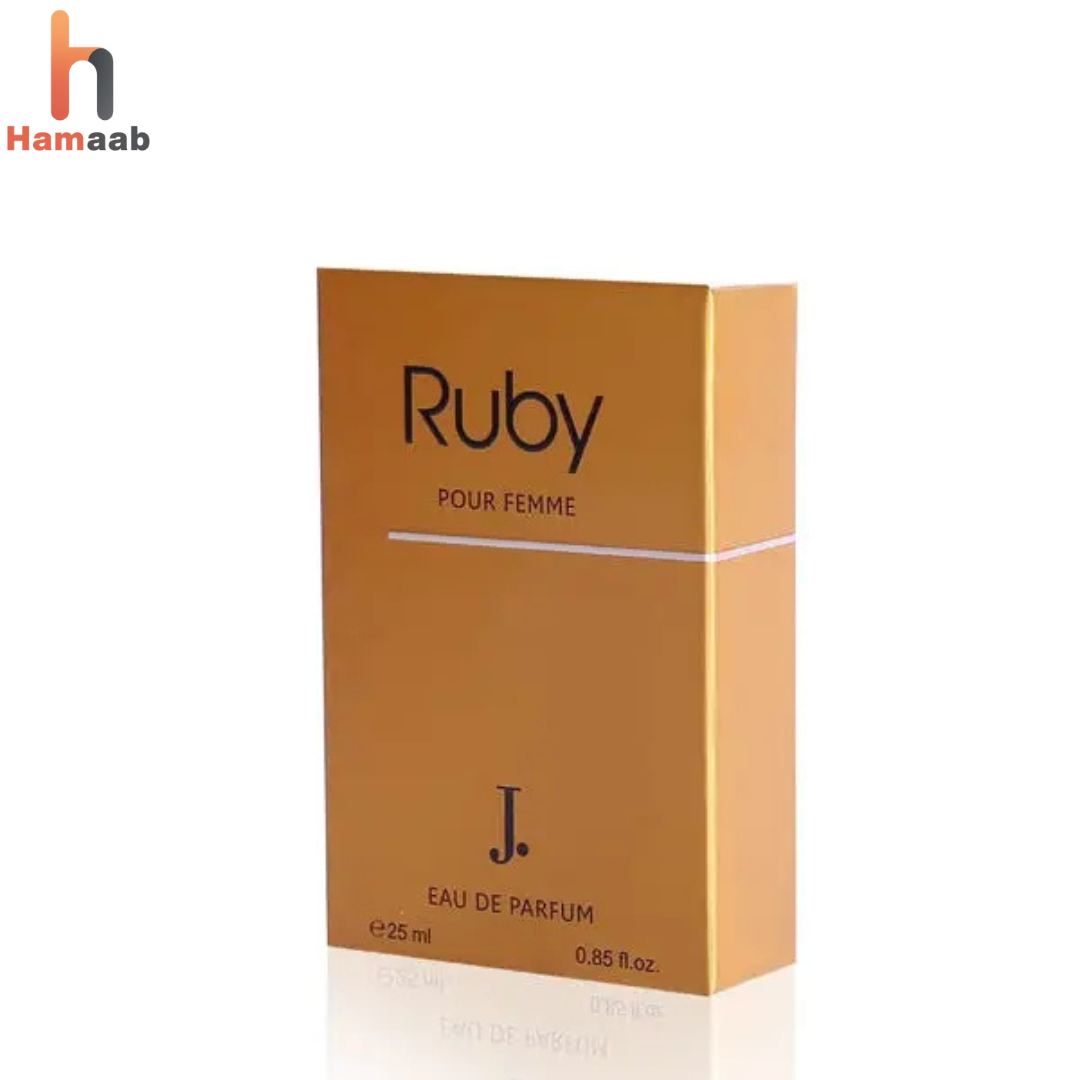 Hamaab J. Perfume Ruby elegant aur captivating fragrance for women Step into a world of vibrant femininity with Ruby by J. Perfumes. This elegant fragrance blends soft fruity top notes with blooming floral heart accords and a warm, musky-amber base. Whether you’re wearing it for everyday charm or a special evening, Ruby delivers a timeless and uplifting impression.