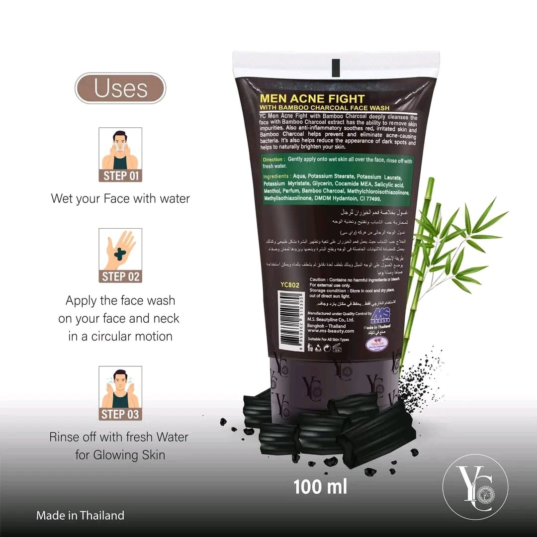 Specially designed for men’s skin, YC Men Acne Fight Face Wash with Bamboo Charcoal Extract deeply cleanses pores, removes dirt, oil & impurities, and fights stubborn acne. Its advanced formula not only controls excess sebum but also keeps skin refreshed, smooth, and clear.